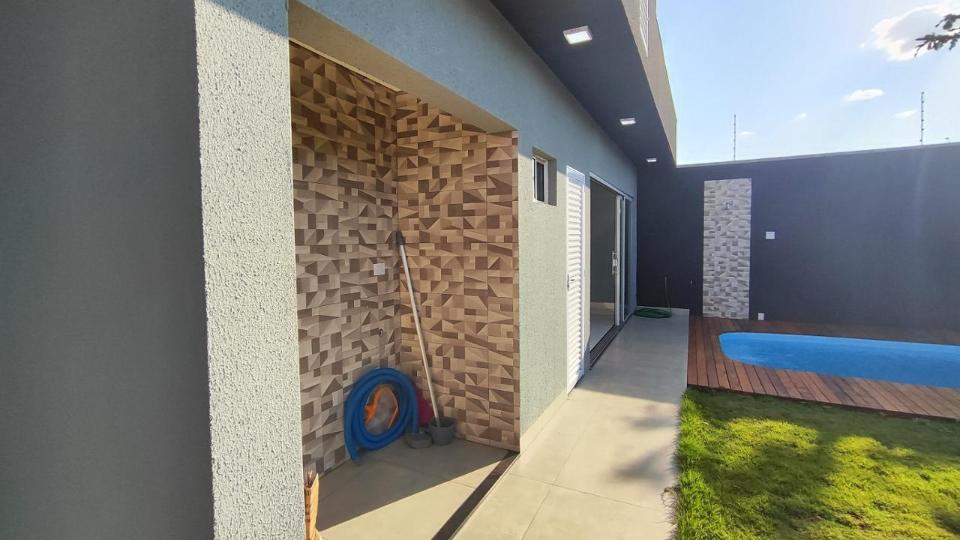 Casa Maravilhosa com Sala para 02 ambientes, 01 suíte, 02 quartos, espaço gourmet amplo, wc social, 02 vagas de garagem piscina, cerca elétrica, lavanderia.