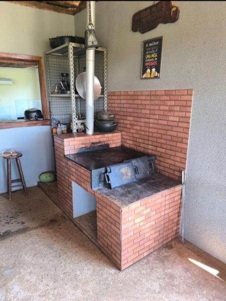 Cozinha Caipira: O grande diferencial são as duas cozinhas, sendo uma delas equipada com um tradicional fogão a lenha, perfeita para os amantes da culinária regional. A cozinha é toda azulejada, unindo o rústico à praticidade.