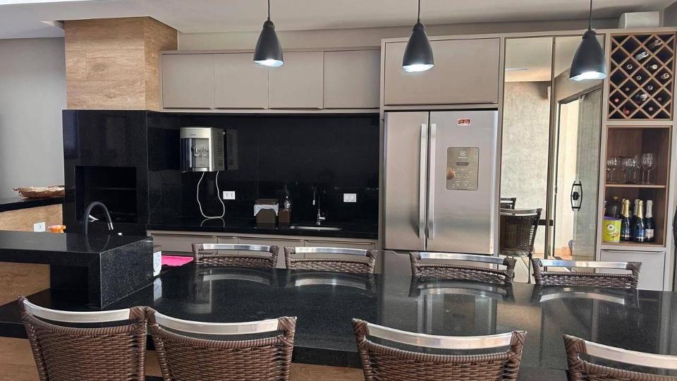 ✔️ Espaço gourmet na piscina com churrasqueira, TV e sistema de som